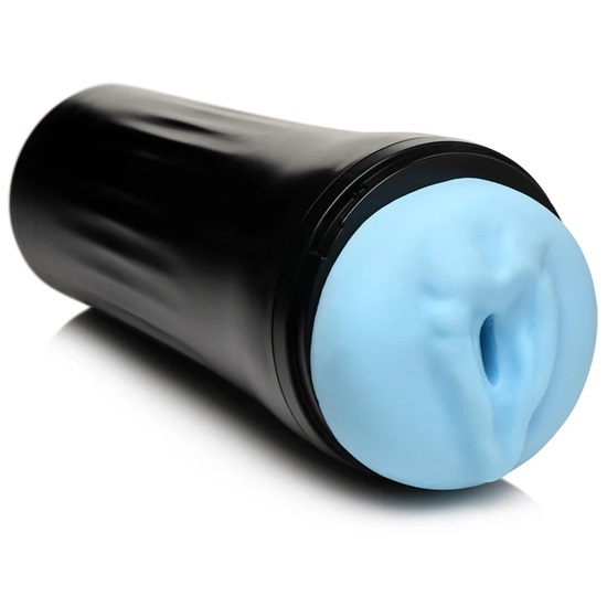 - Pale blue sea creature stroker has soft, raised lips and a small slit