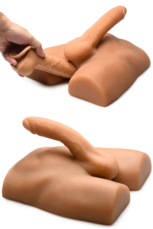 With a rideable, poseable 7 inch dildo and a textured anal canal, you can give and receive any time and any way you want! Enjoy the textured anal canal filled with grippy nubs that massage your shaft as you penetrate his rear entry.