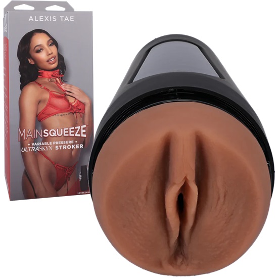 The Main Squeeze Alexis Tae Pussy Stroker by Doc Johnson is a male masturbation sex toy and is part of the Docs hard case masturbators and is always in reach. Main Squeeze starring our most popular porn star molds designed to put the power in your hands.