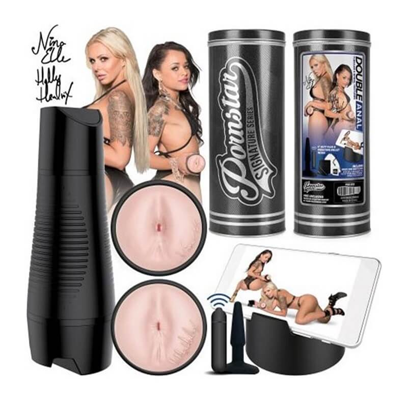 Pornstar Signature Series Nina Elle Holly Hendrix Double Anal Strokers are male sex toys that are moulded directly from these porn stars anuses. Nina Elle and Holly Hendrix ultra-realistic stroker sleeves are plushy, with squeezable texture, bouncy and clingy, gripping your cock tight all the way through multi-textured tunnels.